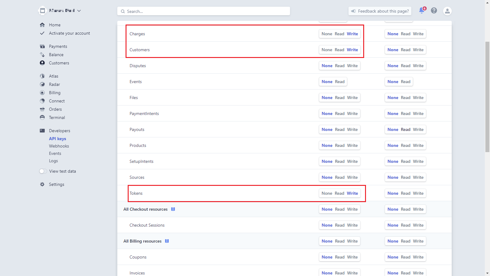 If you want to test "Publishable and Restricted key", then please enable "Test Mode" and follow the steps from begin.