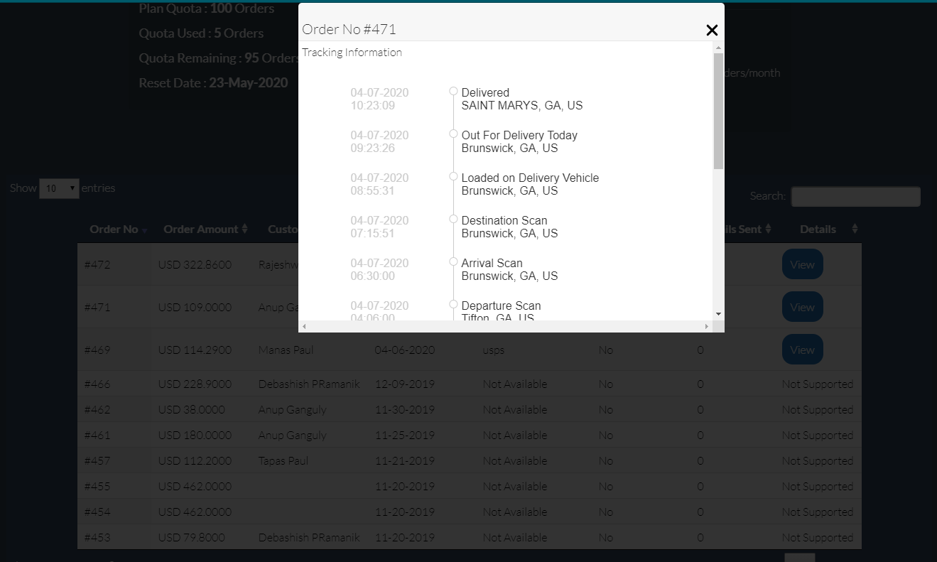 Trackmates also send shipment's event notifications with the tracking link to the customer (i.e. Address Mismatch, Unable to deliver, delivered, etc) if the notification event defined or saved in TrackMates Setting.
