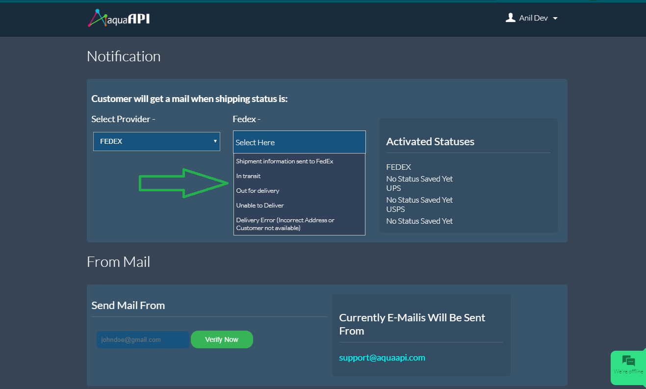 Select the tracking provider you want to be set for sending notification.