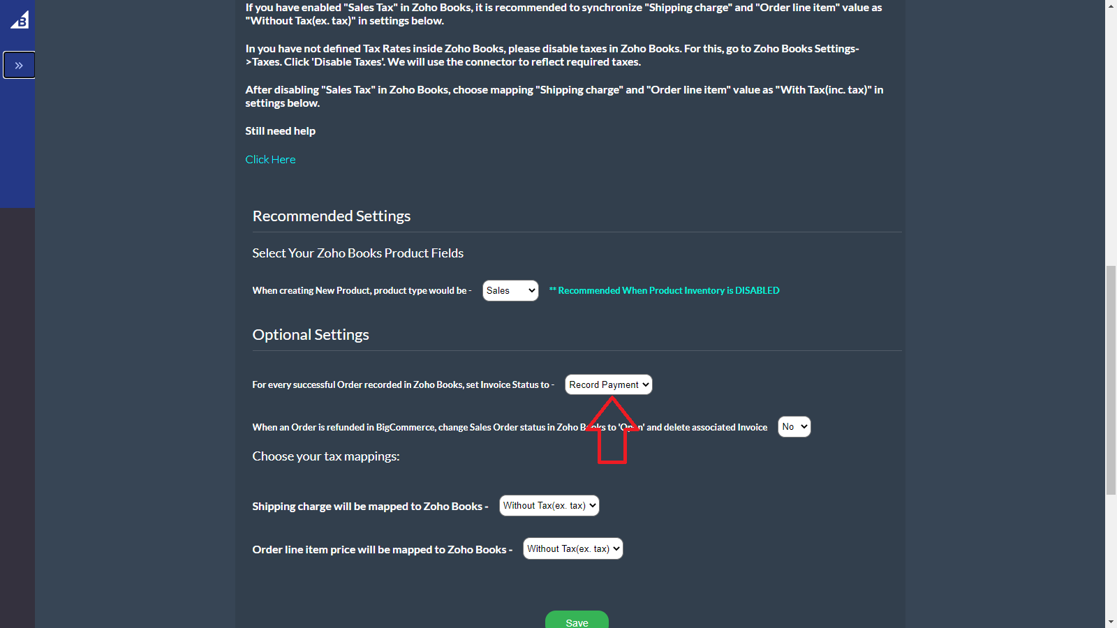 By default, If an order is a successful order and payment of the order is confirmed then the invoice status in Zoho Books will be Paid and the payment will be created for the invoice in Zoho Books by our connector. If an order payment is not confirmed then the invoice status in Zoho Books will be Draft.